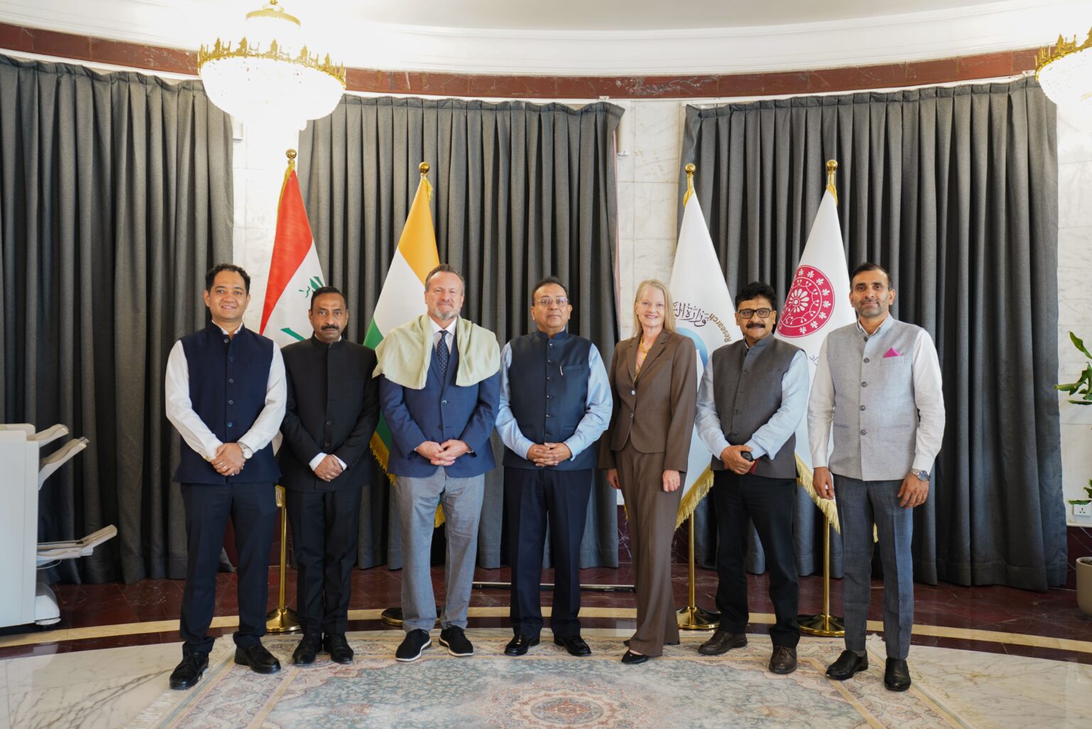 زار سفير جمهورية الهند إلى العراق، السيد سومين باغشي، الجامعة الأمريكية في بغداد، يرافقه وفدٌ من سفارة بلاده. رحّب رئيس الجامعة، د. برادلي كوك، وأعضاء من كادرها بالوفد الزائر، وأوجزوا لهم حول مختلف مبادرات الجامعة ومشروعاتها، وتناقش الطرفان في آفاق تطوير التعاون بينهما في مجالات التعليم والبحوث والتبادل الثقافي.