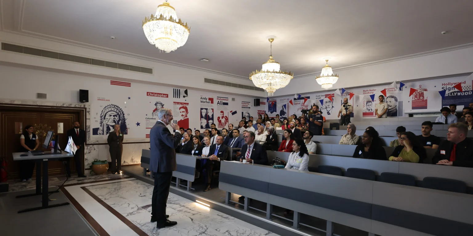 رحّب رئيس الجامعة الأمريكية في بغداد، الدكتور برادلي كوك، بالحضور المتفاعل والحيوي الذي اجتمع في قاعة “الفضاء الأمريكي” في الحرم الجامعي، مشيداً بالشراكة القيّمة بين الجامعة الأمريكية في بغداد وجامعة فاندربيلت، واصفاً الأخيرة بأنها “إحدى أبرز الجامعات المرموقة في الولايات المتحدة”. ورأى د. كوك أن “التعليم في جوهره يدور حول تعزيز الرفاهية البشرية” وجودة “الخيارات التي نتيحها لأبنائنا وبناتنا”، متحدثاً عن دور التعليم الجيد في تحرير العقول والنفوس وتمكينها.