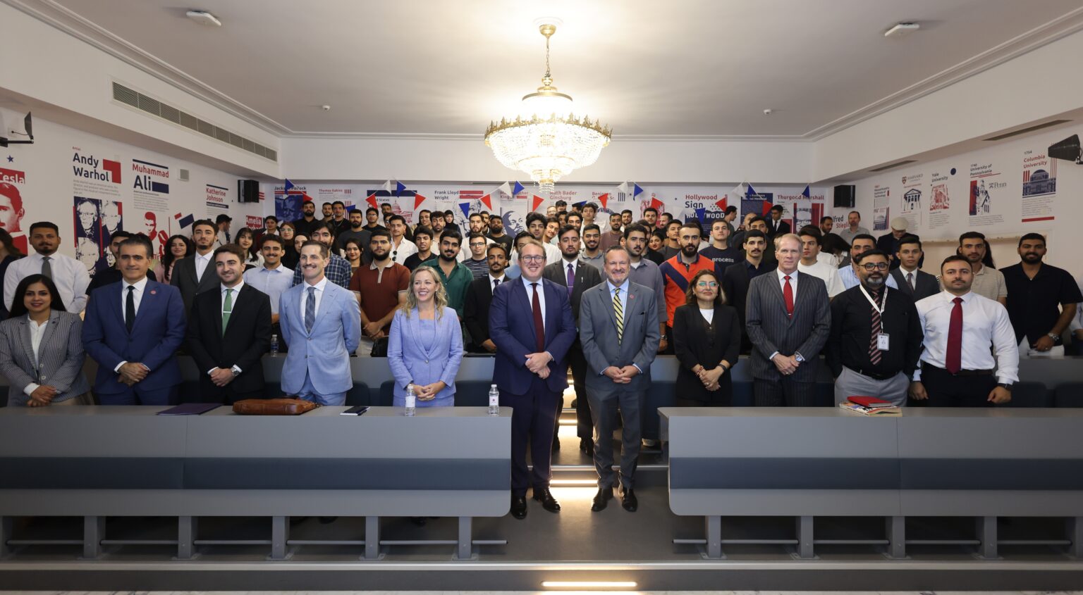 زار القائم بالأعمال المعيَّن حديثاً في سفارة الولايات المتحدة في بغداد، السيد جوشوا هاريس، الجامعة الأمريكية في بغداد، حيث ألقى كلمةً أمام حشدٍ من الطلبة المجتمعين في قاعة “الفضاء الأمريكي“، وانخرط معهم في نقاشٍ واسع النطاق بمناسبة “يوم الدستور“ الأمريكي.