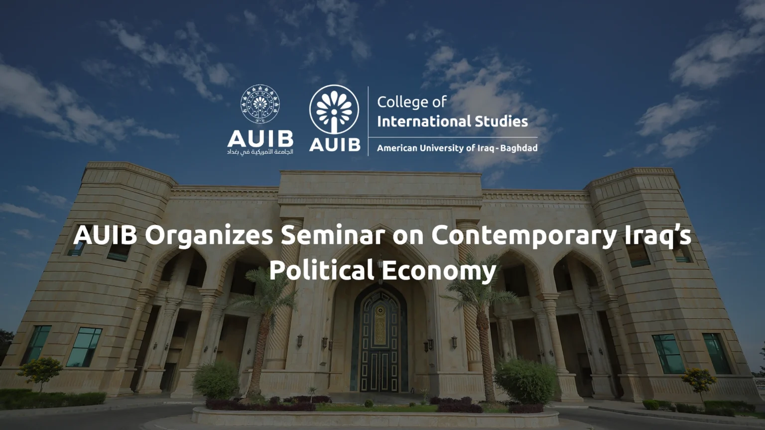 The College of International Studies (CIS) at the American University of Iraq-Baghdad (AUIB), in collaboration with AUIB’s National Heritage Office, organized a seminar titled “The Contemporary State of Iraq’s Political Economy,” where two Chatham House scholars, Dr. Renad Mansour, Senior Research Fellow and Project Director of the Iraq Initiative at Chatham House, and Mr. Hayder Al-Shakeri, gave a talk to an audience of students, faculty, and University officials, followed by a lively discussion of the subject matter.