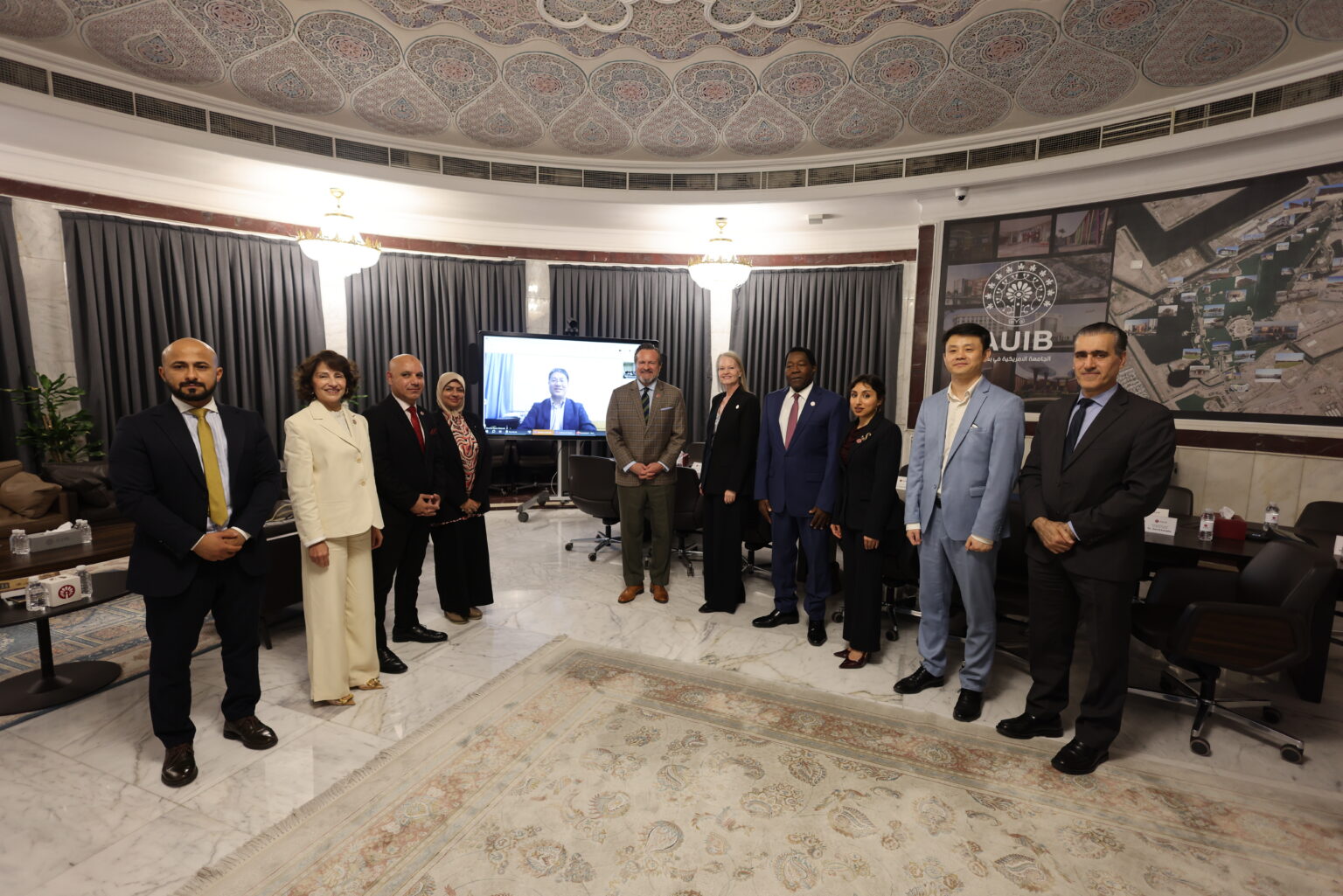 A delegation from the Global Waste-to-Energy Research and Technology Council (WtERT)_ an international academic network founded by the Earth Engineering Center at Columbia University, with a mission to advance the recovery of energy and materials from residual, non-recyclable waste_ visited the American University of Iraq-Baghdad (AUIB), where they met university President, Dr. Bradley Cook, and members of AUIB’s academic and administrative cadre, joined in a virtual meeting by WtERT President, Prof. Qunxing Huang, and leading members of the global academic network.